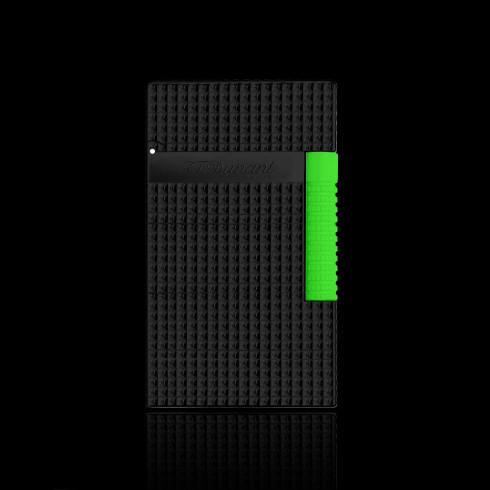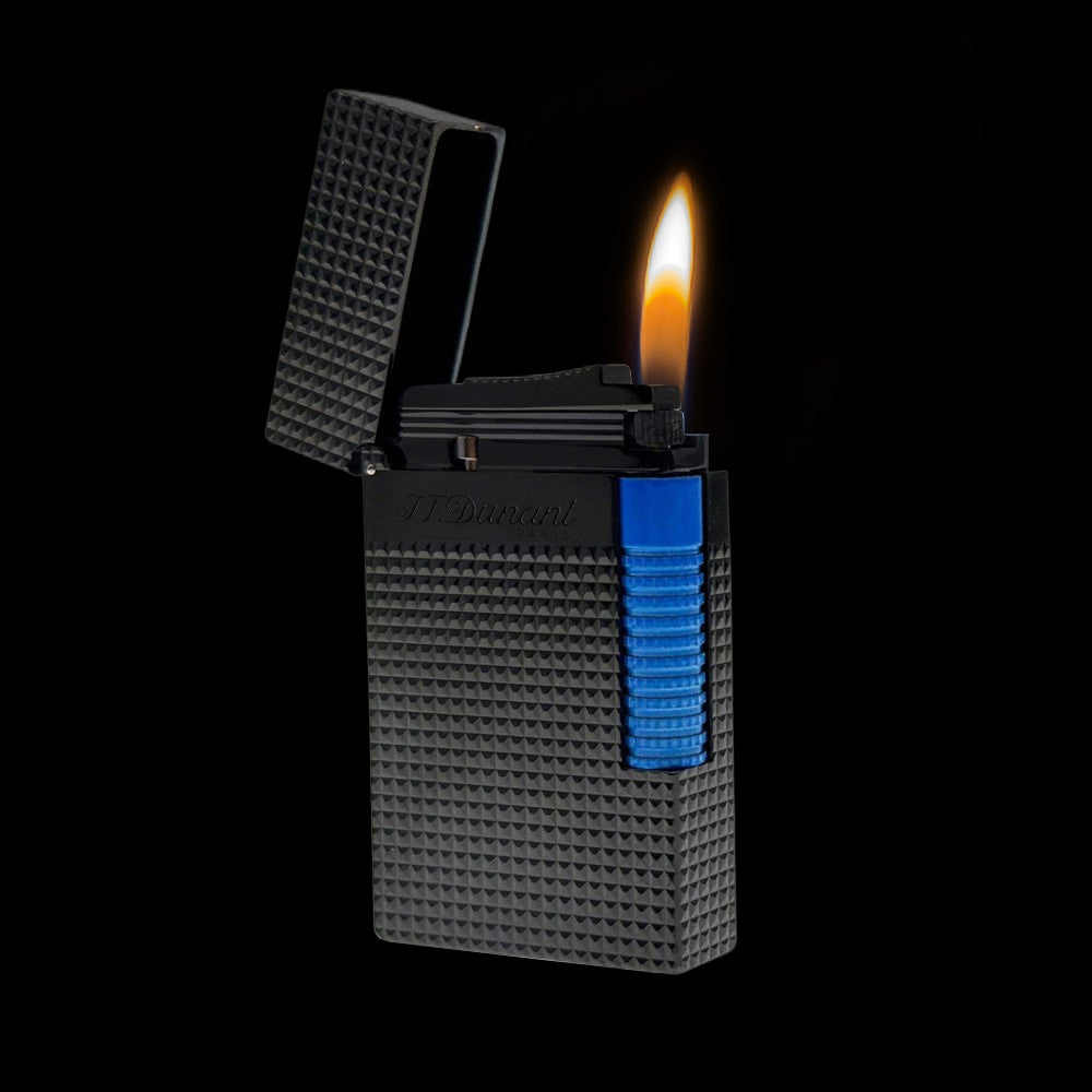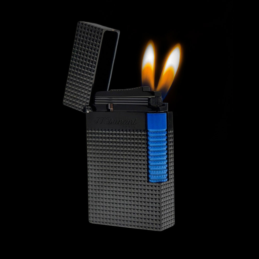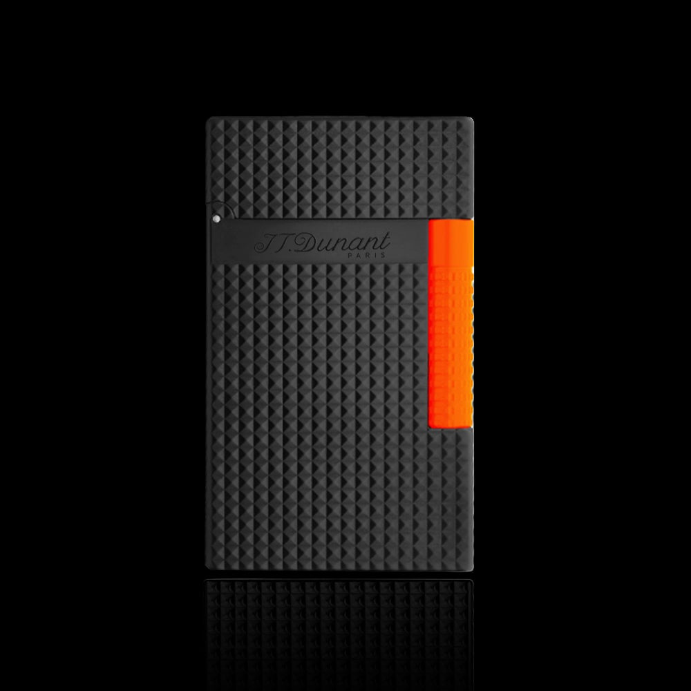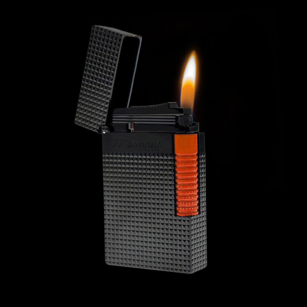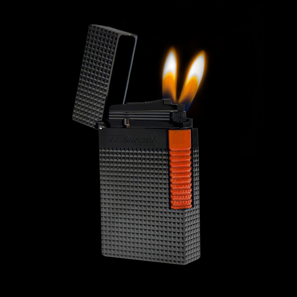 Experience the artistry of the JT Dunant lighter Le Grand Diamond Guilloche Edition. Featuring a semi-matte black finish with a silky feel, this lighter is enhanced with a diamond-tipped guilloche design and a bold fluorescent trigger inspired by fashion and automotive trends. Its dual-flame system offers a soft flame for gradual heating for perfect ignition under any condition. A true blend of elegance, performance, and modern style, this lighter is a must-have for collectors and cigar enthusiasts.