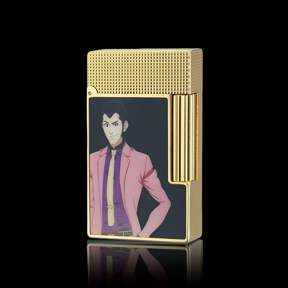 Created to celebrate the 150th anniversary of JT Dunant, the Ligne 2 Lupin VS Cat’s Eye Edition is a tribute to two legendary icons. This limited-edition lighter features a gold-tone body with a refined grid-textured finish, highlighted by a vivid engraving of Lupin in his signature pink suit. |